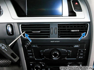 Diese Anleitung zeigt den Einbau einer FISCON Plus Freisprecheinrichtung in einen Audi A4 (8K) oder A5 mit Radio Concert oder Symphony.